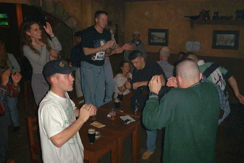 These fans are so swept up by the emotions of one of the songs of rebellion, they pound out the rhythms on the table. Doesn't it make you wish you were here? |