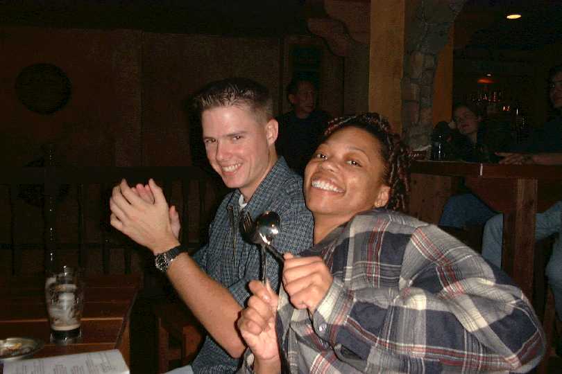 These fans are so swept up by the emotions of one of the songs of rebellion, they pound out the rhythms on the table. Doesn't it make you wish you were here? |